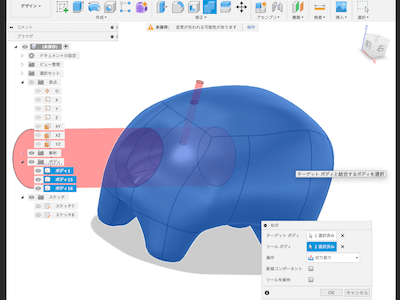 「Fusion360のフォームモデリング機能」を半年ぶりに使おうとすると操作の流れやメニューボタンの位置がうろ覚え。やっと分かったと思って作り始めても、理想のボディが出来ない上、微修正している内に交差エラーが多発する事態が発生(泣)。出力したボディは数体ですが、Fusion上ではボディ作成&削除の繰り返しとなりました。