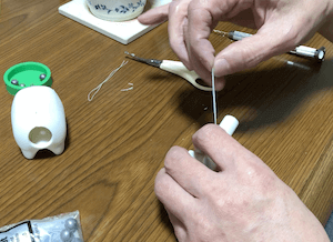 今回は、糸を通したり、重りを入れるため、