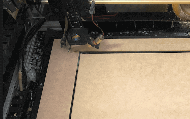 FABOOL Laser CO2のフタをあけ、材料をセットします。