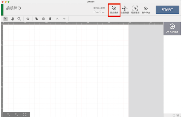 「原点復帰」をクリックし、レーザーヘッドを原点に移動します。