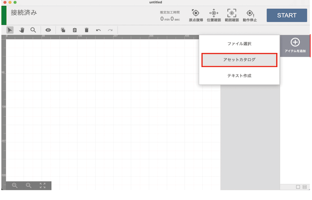 「アイテムを追加」よりデータの読み込みをします。読み込みは下記3種類から選択できます。