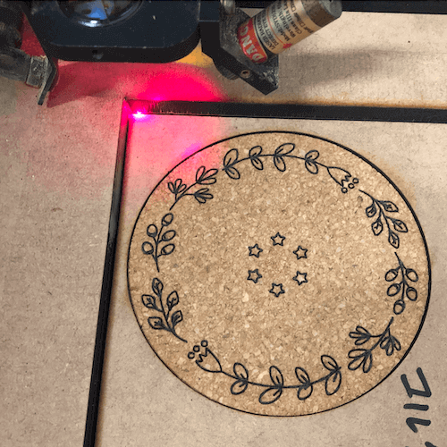**レーザー彫刻で同じデザインの作品を複数作る場合、同じ加工位置に設置するのは時間と手間がかかります。**そんな時に活躍するのが「加工品を定位置に固定して加工できる治具」です。今回、コルクコースター加工時に簡単な治具を作成したので作り方・気づいた点・感想などを自身の備忘録としてまとめてみました。