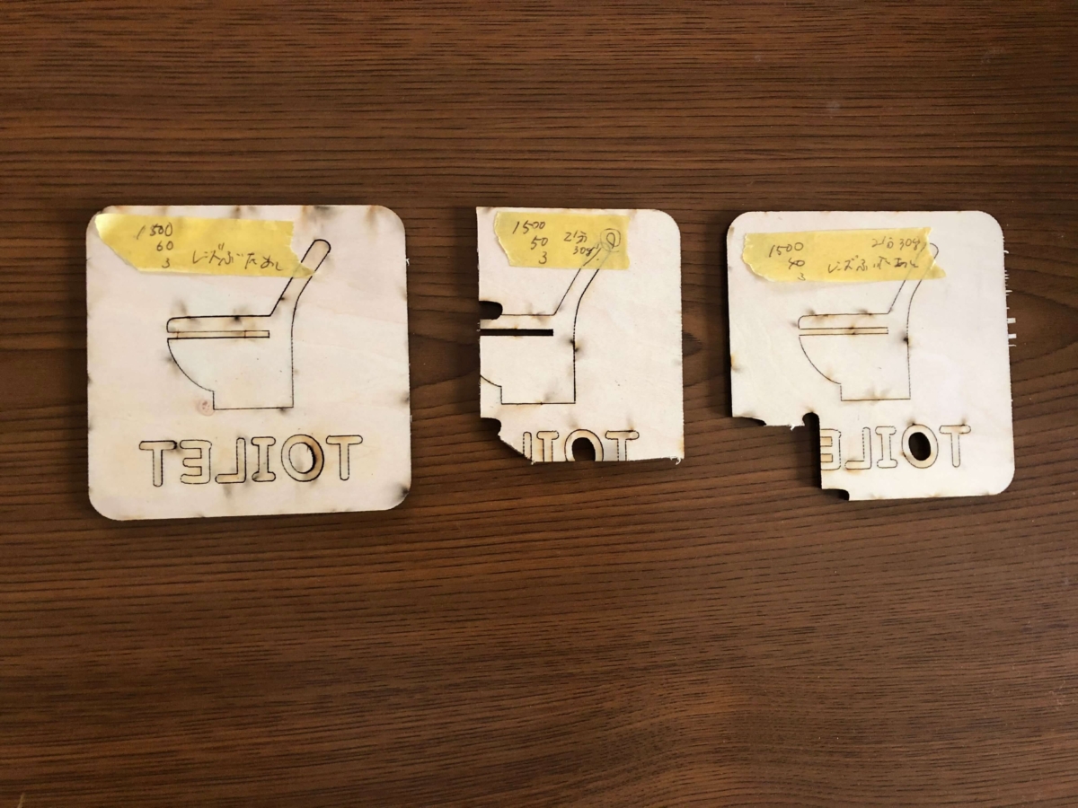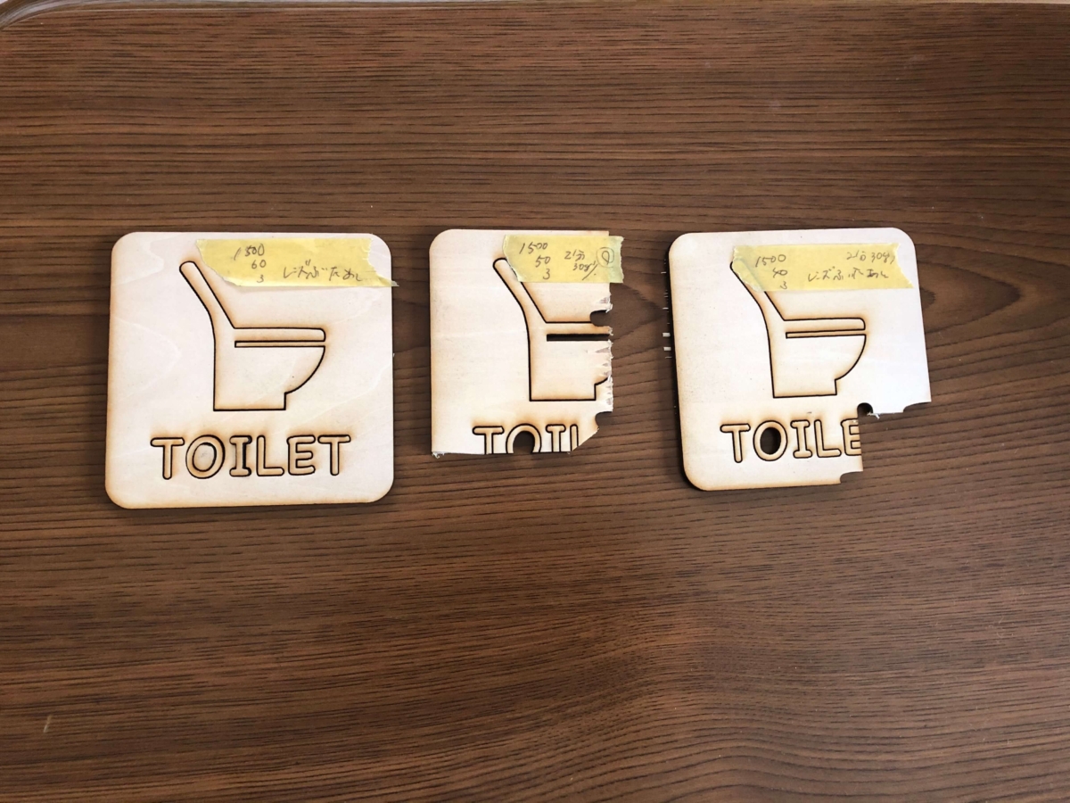 レーザーカット、スピード・パワーの設定を色々変えて見たけど試作がうまくいかない。あとは何をどう変えれば良いのかな?