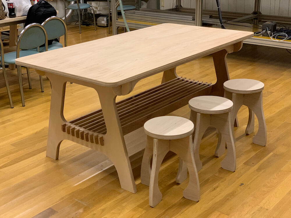CNCで製作した机と椅子、狙って作った訳ではないが上手く纏まっている。
