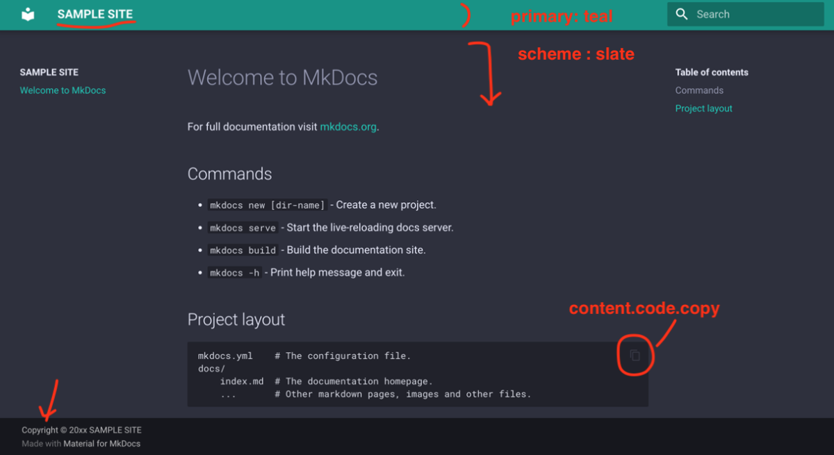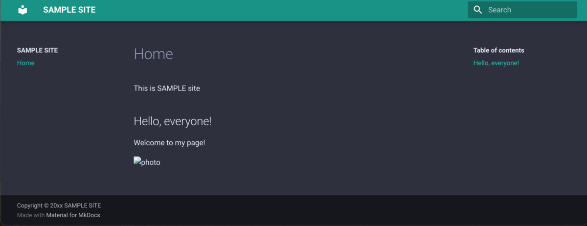 私の場合、MkDocs Themesから好みのものを探し、今回はMaterialをインストールし、使って見ることにしました。