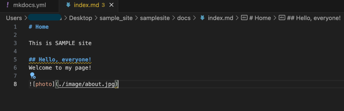 mkdocs.ymlの編集 (Mkdocs カスタマイズ)