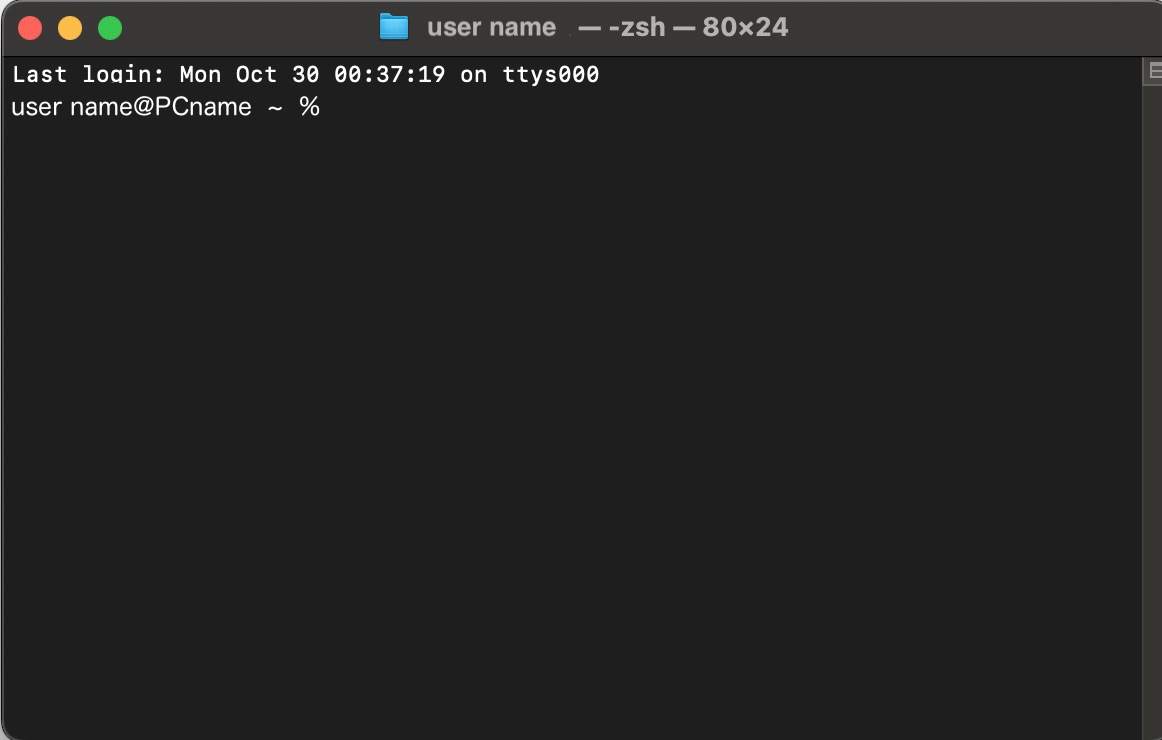 ターミナルが起動すると、プロンプトが表示されます。これは、システムがユーザーコマンドの入力を待っている状態です。ここにコマンドを入力し、Enterキーを押すと、コマンドが実行されます。